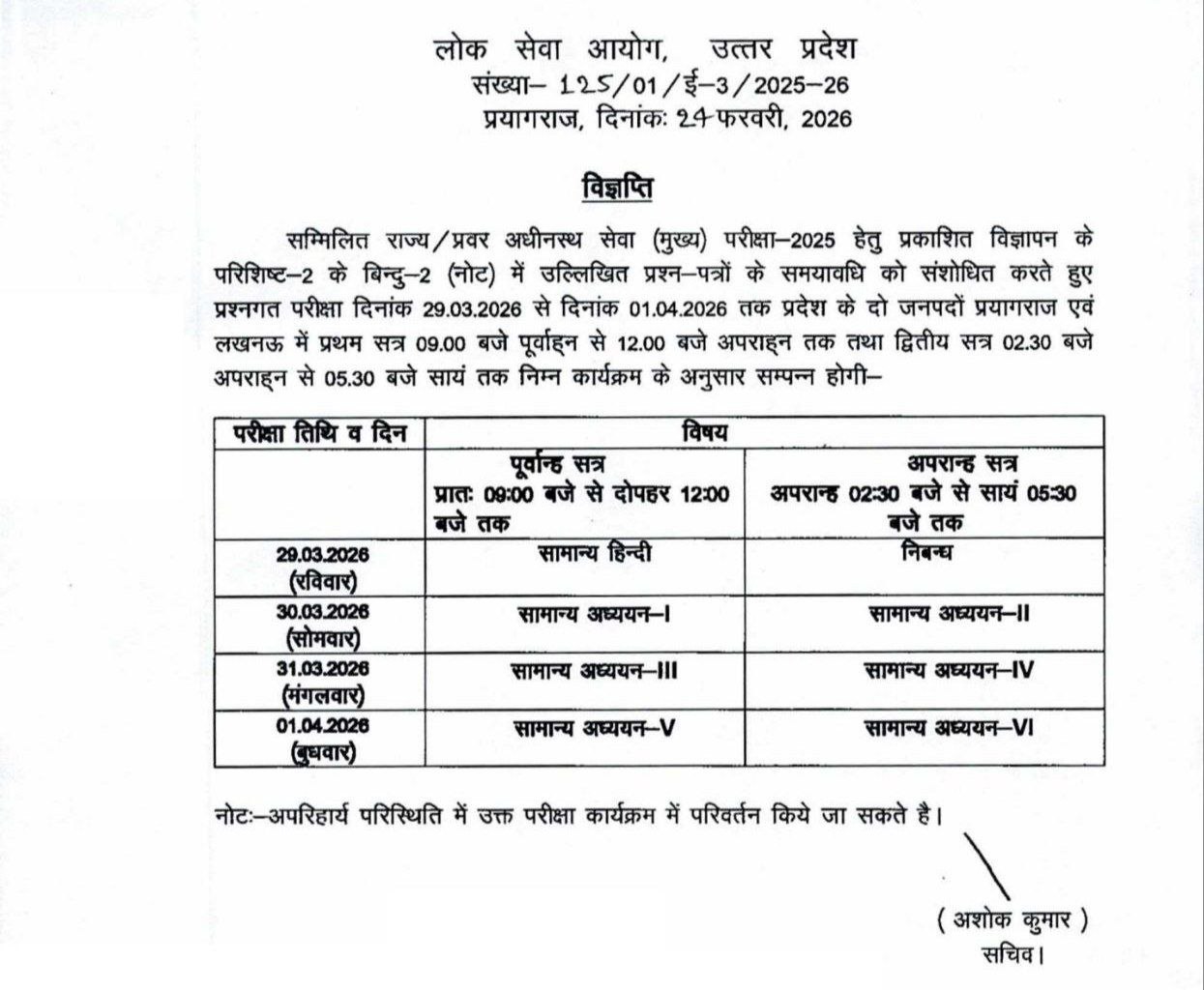 How To Download UPPSC Combined Upper Subordinate Service Mains Exam Date 2026